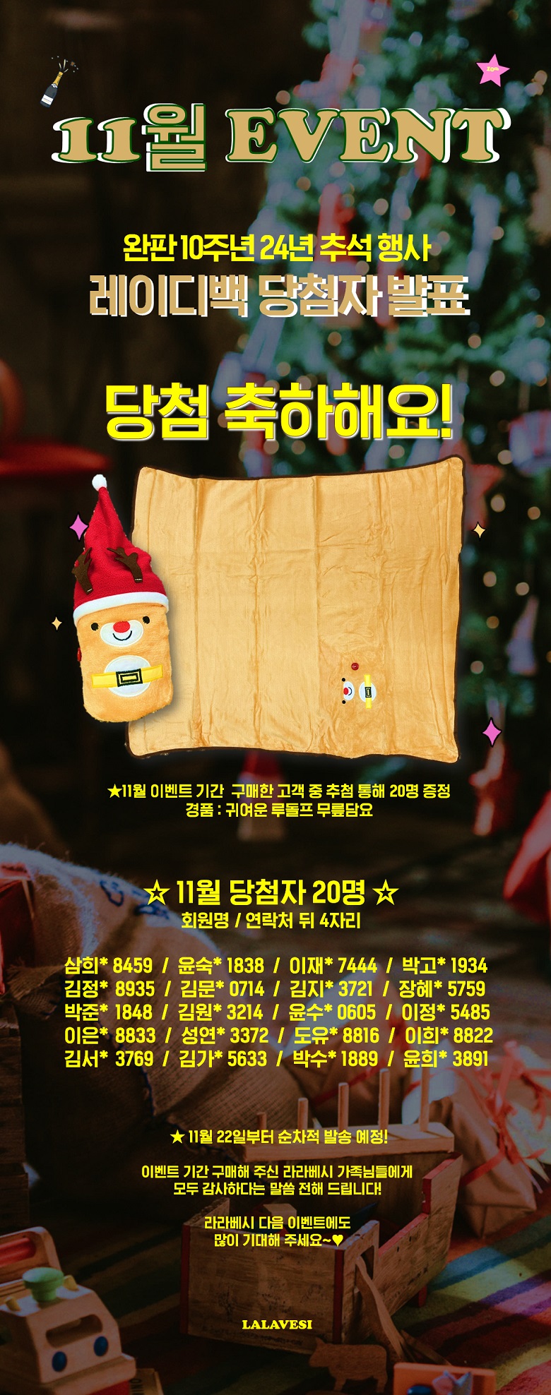 2024 11¿ù ¿ùµ¿Á¦ ¹«¸´ã¿ä °æÇ° ´ç÷ÀÚ ¹ßÇ¥